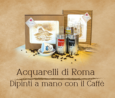 Tostare il caffè, è arte. E come ogni artista che si rispetti, negli anni la torrefazione si è evoluta aggiungendo un tocco artistico a tutto ciò che rappresentasse il marchio ed il prodotto finale. Mancava qualcosa, un qualcosa che unisse il caffè all’arte visiva. Così l’idea di usare il caffè per dipingere. Opere realizzate a mano con la tecnica dell`acquarello, impiegando solo estratti di caffè. Da qui, nasce la collezione “Roma”, dieci soggetti rappresentativi della città, dipinti con il caffè. Ogni dipinto è confezionato in una scatola, con all’interno del macinato per la Moka e delle tazze a marchio Fantini. Pablo Picasso diceva che “L’artista è un vero ricettacolo di emozioni venute da non importa dove: dal cielo, dalla terra, da un pezzo di carta, da una figura che passa, da una ragnatela…”, e noi, aggiungiamo le emozioni che vengono dal caffè. I cofanetti Roma e Arte sono un omaggio a Roma, un omaggio all’arte, un souvenir, un regalo unico nel suo genere l’idea originale di una torrefazione che il caffè non solo lo tosta e lo degusta, ma riesce anche a trasformarlo in emozioni.